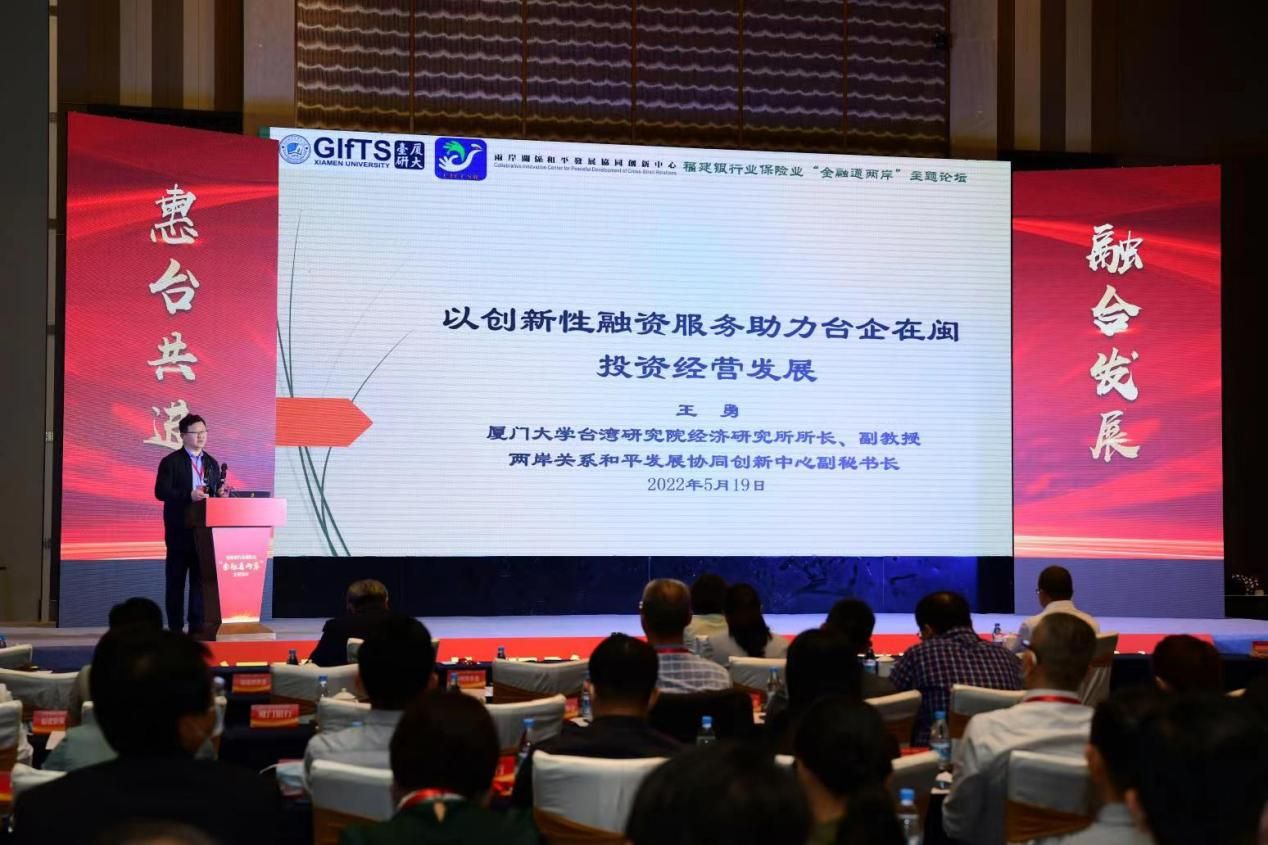 2022年5月19日上午,两岸协创中心副秘书长、台湾研究院经济所所长王勇副教授受邀于漳州参加由福建金融工会和福建金融团工委联合主办的“福建银行业保险业‘金融通两岸’主题论坛”,并做论坛主题发言:《以创新性融资服务助力台企在闽投资经营发展》。发言内容主要包括:“台湾地区扶持中小企业发展的融资措施”、“福建省吸引台资企业投资现况”、“台企在闽投资经营存在融资‘瓶颈’”、“为台企在福建投资经营提供创新性融资服务支持”等四部分。此次论坛做主题发言的另外两位嘉宾分别为:兴业银行首席经济学家鲁政委博士、厦门银行吴昕颢行长。