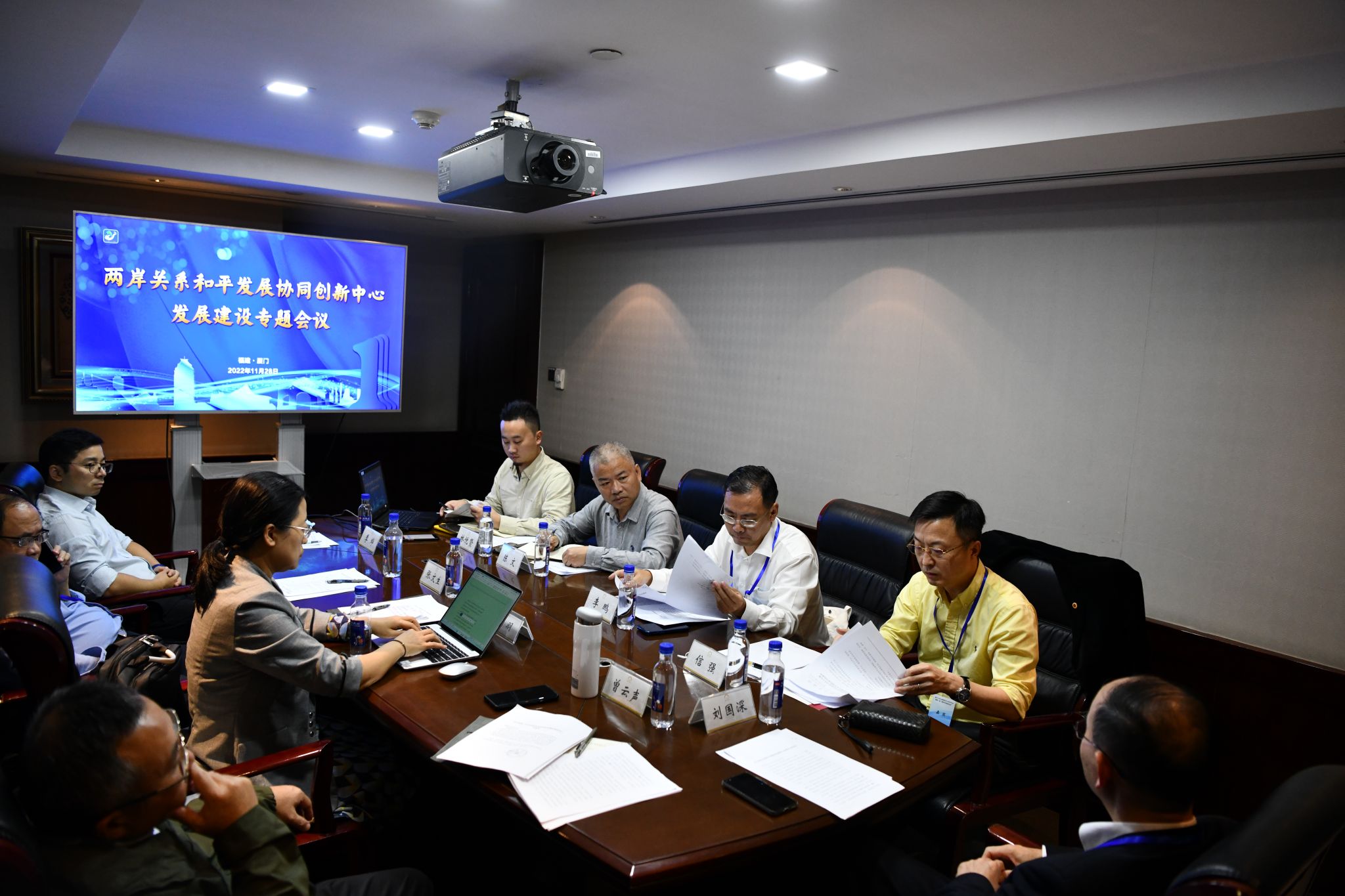 2022年11月28日下午,两岸关系和平发展协同创新中心发展建设专题会于厦门顺利召开。中心主任刘国深、中心秘书长、台湾研究院院长李鹏、台湾研究院党委书记曾云声、复旦大学美国研究中心副主任信强、福建师范大学闽台区域研究中心副主任吴巍巍、台湾研究院张文生副院长、张羽副院长、季烨副院长、院党委副书记陈文、中心秘书林悦贤出席了会议。会议由刘国深教授主持。