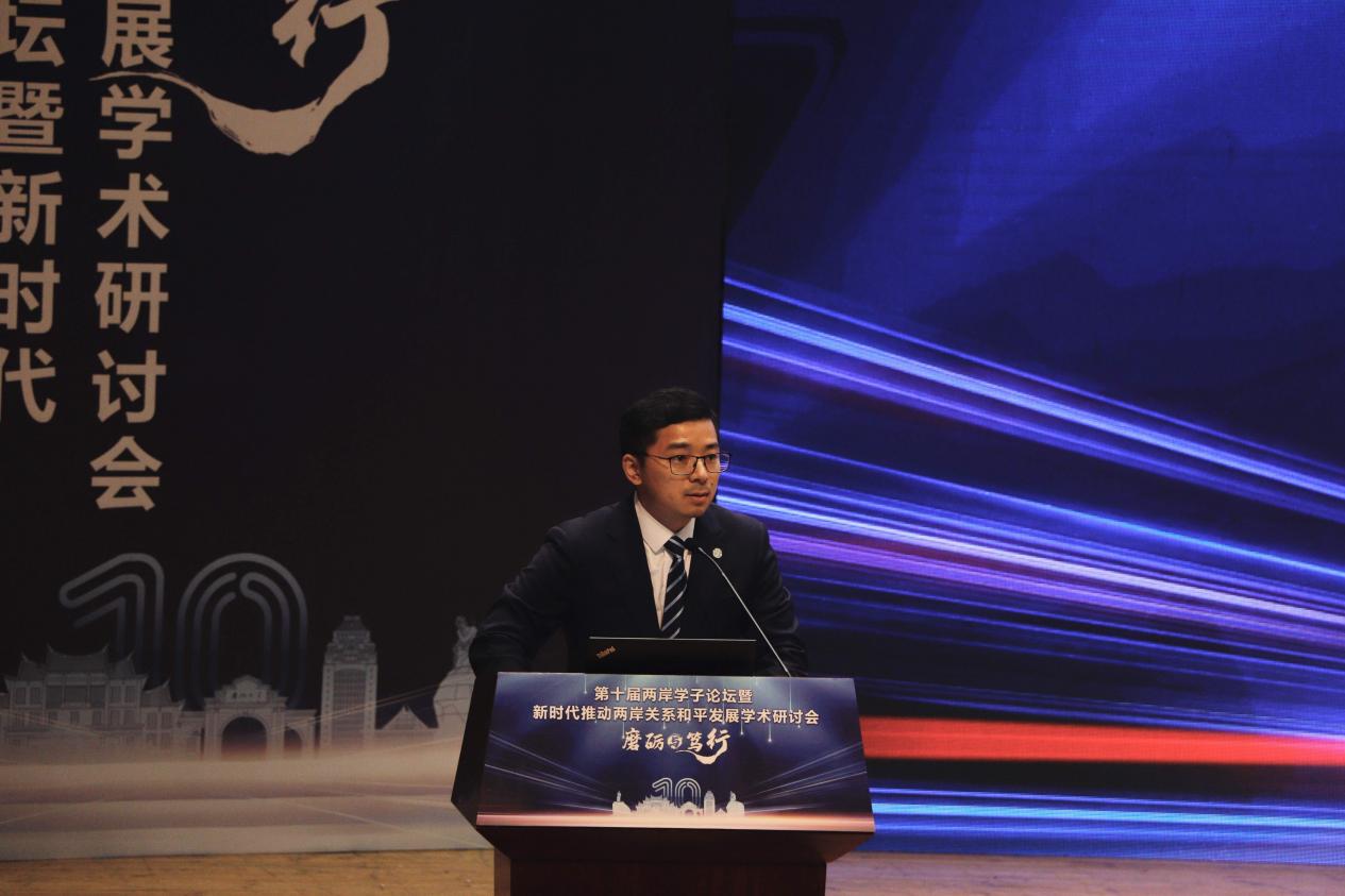 后续在厦门大学台湾研究院教授、社科处副处长季烨主持的研究生代表主题发言环节,来自中国人民大学的于顺、南开大学的薛彦、台湾“中央大学”的蔡昀霖、台湾中山大学的魏漪苇、厦门大学的林彦涛、中国文化大学的王旋等六位研究生分别就台湾政治局势、两岸经济、历史、文化、法律、社会交流领域汇报了各自的研究心得及最新成果。