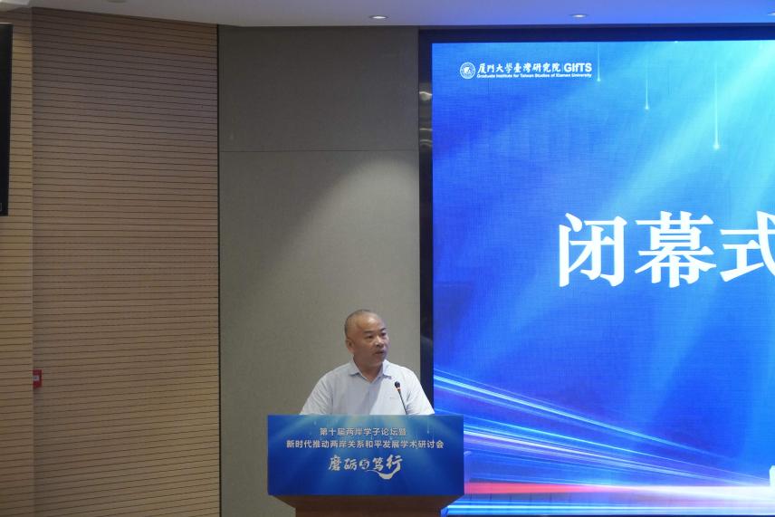 7月9日,由中华全国台湾同胞联谊会指导,两岸关系和平发展协同创新中心、海峡交流文化中心主办,厦门大学台港澳事务办公室、厦门大学研究生院、厦门大学学生工作处、共青团厦门大学委员会协办,厦门大学台湾研究院负责承办的第十届“两岸学子论坛·磨砺与笃行”在厦门圆满落下帷幕,海峡两岸关系协会、全国台湾研究会副会长孙亚夫、海峡交流文化中心秘书长陈准、厦门大学台湾研究院党委书记郭锦星、院党委副书记陈文、副院长张文生、副院长张羽等参加闭幕式。
