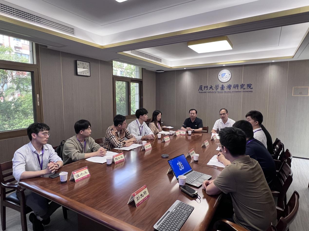 9月26日下午,2024年南强青年学者论坛台湾研究院分论坛在台湾研究院301会议室和厦大嘉庚四分会场成功举办。台湾研究院党委书记郭锦星,厦门大学两岸关系和平发展协同创新中心专家、台湾研究院院长李鹏、各研究所所长参加活动。本次论坛邀请了剑桥大学博士生郭浩田、京都大学博士生陈春松、京都大学博士生黄诗琦、比利时根特大学博士生彭先琦、武汉大学博士生汪小义、中南大学博士生王尚鹏、厦门大学叶子容、台湾政治大学博士生陶弘毅、台湾大学博士生侯长坤等9位青年学者作学术报告。