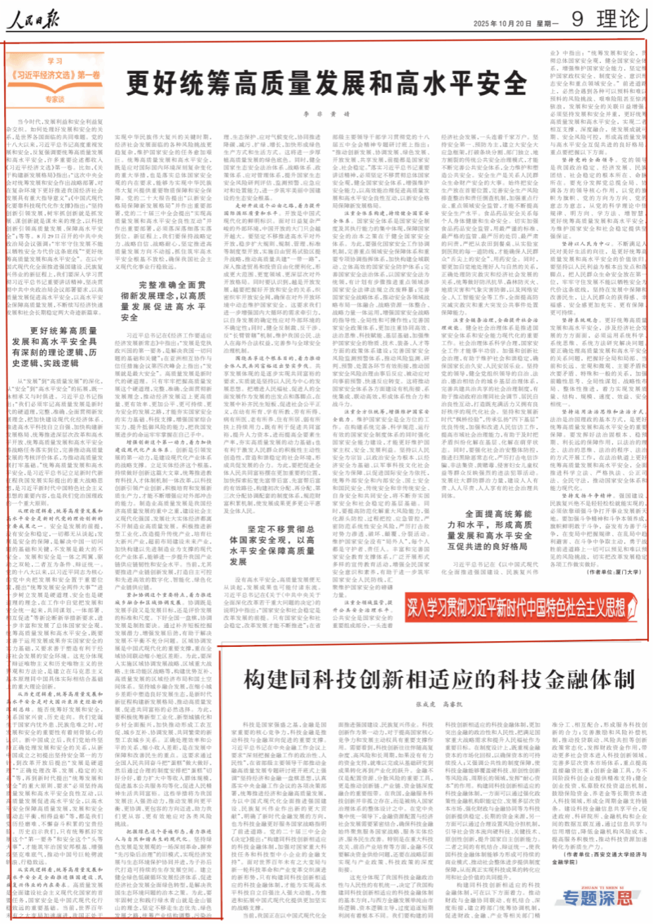 当前,世界百年未有之大变局加速演进,统筹高质量发展和高水平安全成为关系国家长远发展的重大课题。2025年10月20日,《人民日报(理论版)》刊发两岸关系和平发展协同创新中心学者暨厦门大学台湾研究院特聘教授李非、博士生黄婧的署名文章《更好统筹高质量发展和高水平安全》,就这一时代课题作出深入阐释。以下为原文: