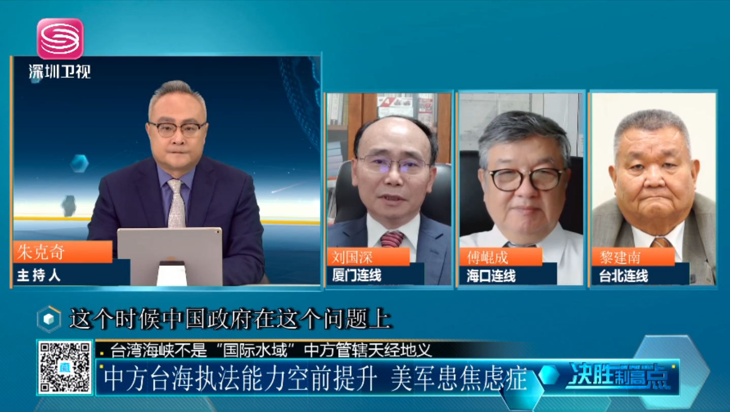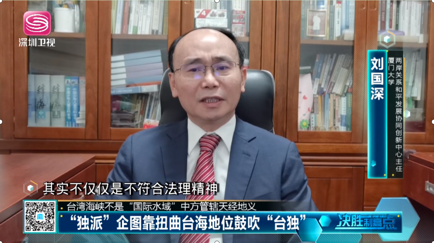两岸关系和平发展协同创新中心主任、厦门大学台湾研究院特聘教授刘国深近日与北京、上海及台北学者,针对美国大打“台湾牌”等相关话题,共同接受深圳卫视《决胜制高点》节目连线专访。