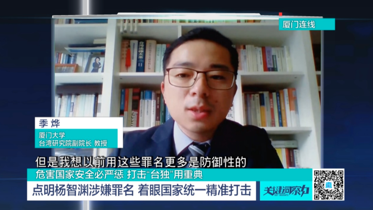 对此,厦门大学台湾研究院副院长、共同事务平台执行长季烨认为,以前大陆追究“台独”分子刑事责任,经常适用的罪名是“间谍罪”,比如窃取、刺探、收买、非法提供国家秘密、情报等,这些罪名更多是防御性的,也就是说,“台独”分子不能在大陆领域内搞破坏,但是现在我们适用的是分裂国家罪和煽动分裂国家罪,这两个罪名更加明确地站在了整个国家的角度,更加直接地针对“台独”分裂行径,更加明确地着眼于国家统一,这对于“台独”分裂分子是一种震慑。