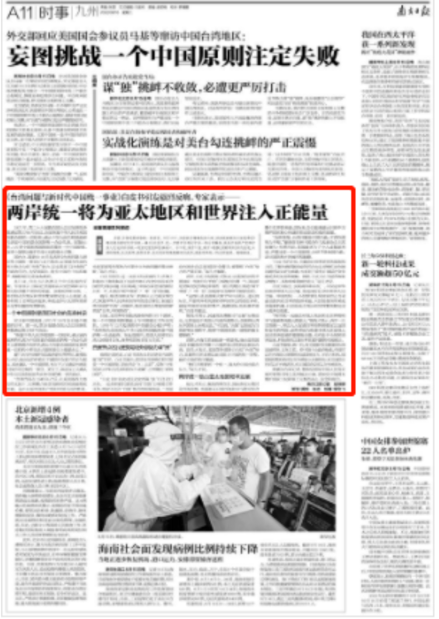 8月10日,国务院台湾事务办公室、国务院新闻办公室发布《台湾问题与新时代中国统一事业》白皮书,进一步重申台湾是中国一部分的事实,展现中国共产党和中国人民追求祖国统一的坚定意志和坚强决心。我院政治研究所所长陈先才教授接受《南方日报》专访。他表示,白皮书的公布,无疑会让世界更多的国家和人们,了解台湾问题形成的历史由来,使他们对台湾问题的认知更为准确,也有利于我们在国际社会争取更多的支持和理解。因此,白皮书在当前台海复杂情势下,具有特殊重要的意义。
