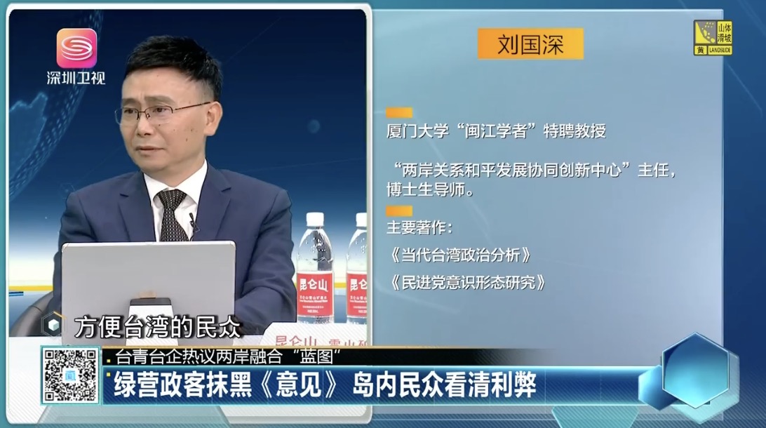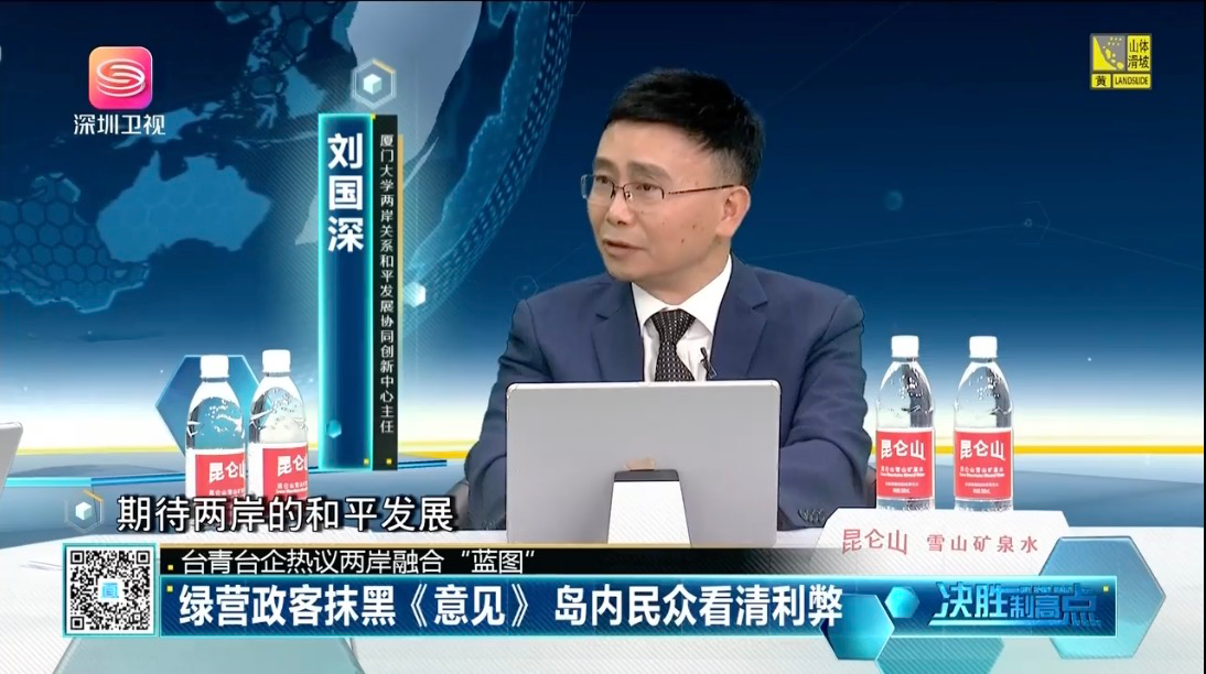 近日,两岸关系和平发展协同创新中心主任、厦门大学台湾研究院特聘教授刘国深作客深圳卫视《决胜制高点》节目,与多位学者围绕《中共中央 国务院关于支持福建探索海峡两岸融合发展新路 建设两岸融合发展示范区的意见》(以下简称《意见》)的颁布实施,共同分析讨论有关“建设两岸融合发展示范区政策落地”的议题。