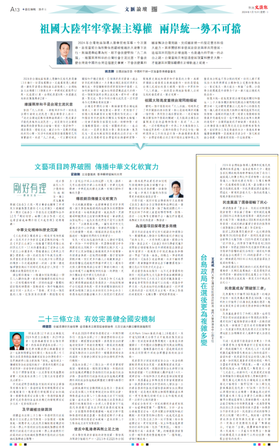 2024年台湾地区领导人选举和民意代表选举结果出炉,基本在意料之中。选前各家民调也较为清晰准确地反映了岛内三组候选人的实力对比和博弈态势。岛内政局进入一个新的历史时期:三党互动博弈,民进党略微占据上风,蓝白联合才有能力抗衡民进党,但民众党试图在蓝绿之间游走,实现利益最大化。岛内政局进入复杂多变的新阶段。