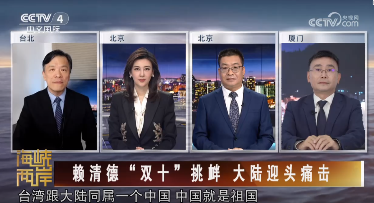 据台湾媒体报道,赖清德近日连抛“台独”言论,在“双十”活动中再称所谓“两岸互不隶属”,招致岛内各界批评其“两国论”。讲话一出,民调显示赖清德的施政满意度和支持率出现了双双下滑。赖清德为什么不顾民意一再升级挑衅,如何看待岛内反对赖清德搞“台独”的民意?两岸关系和平发展协同创新中心主任、厦门大学台湾研究院特聘教授刘国深受邀作客央视《海峡两岸》节目,就以上话题与节目嘉宾共同解析。