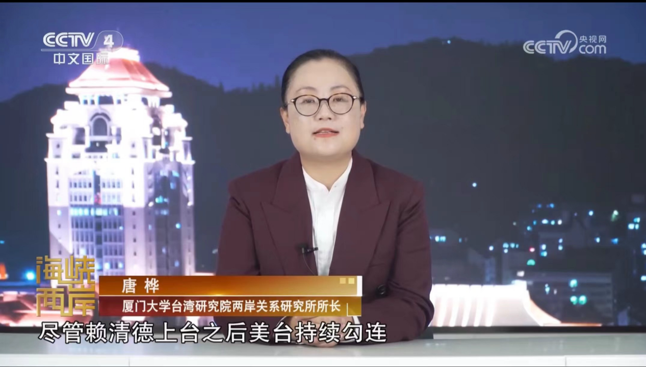 展望新的一年,两岸关系机遇和挑战并存,民进党当局继续执政,谋“独”挑衅的动作不断,反“独”促统将面临哪些挑战?大陆继续推动海峡两岸融合发展,扩大民间交流,两岸同胞心灵契合又会有怎样的发展?就这样一些话题,央视《海峡两岸》节目邀请到中心学者、厦门大学台湾研究院两岸关系研究所所长唐桦与两岸嘉宾一同进行探讨。