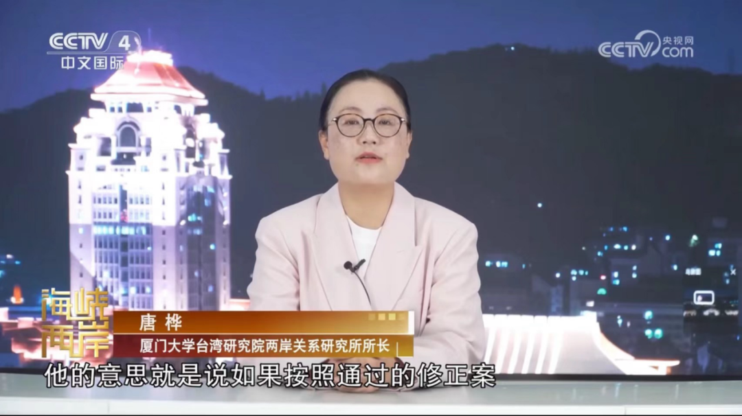 近日,民进党在立法机构遇到全面溃败,中国国民党民意代表们成功推动了三大“法案”,这三大“法案”的内容究竟是什么?民进党的负隅顽抗又为何招致了更大的败仗?厦门大学台湾研究院两岸关系研究所所长唐桦受邀在央视《海峡两岸》就此类话题展开解析。